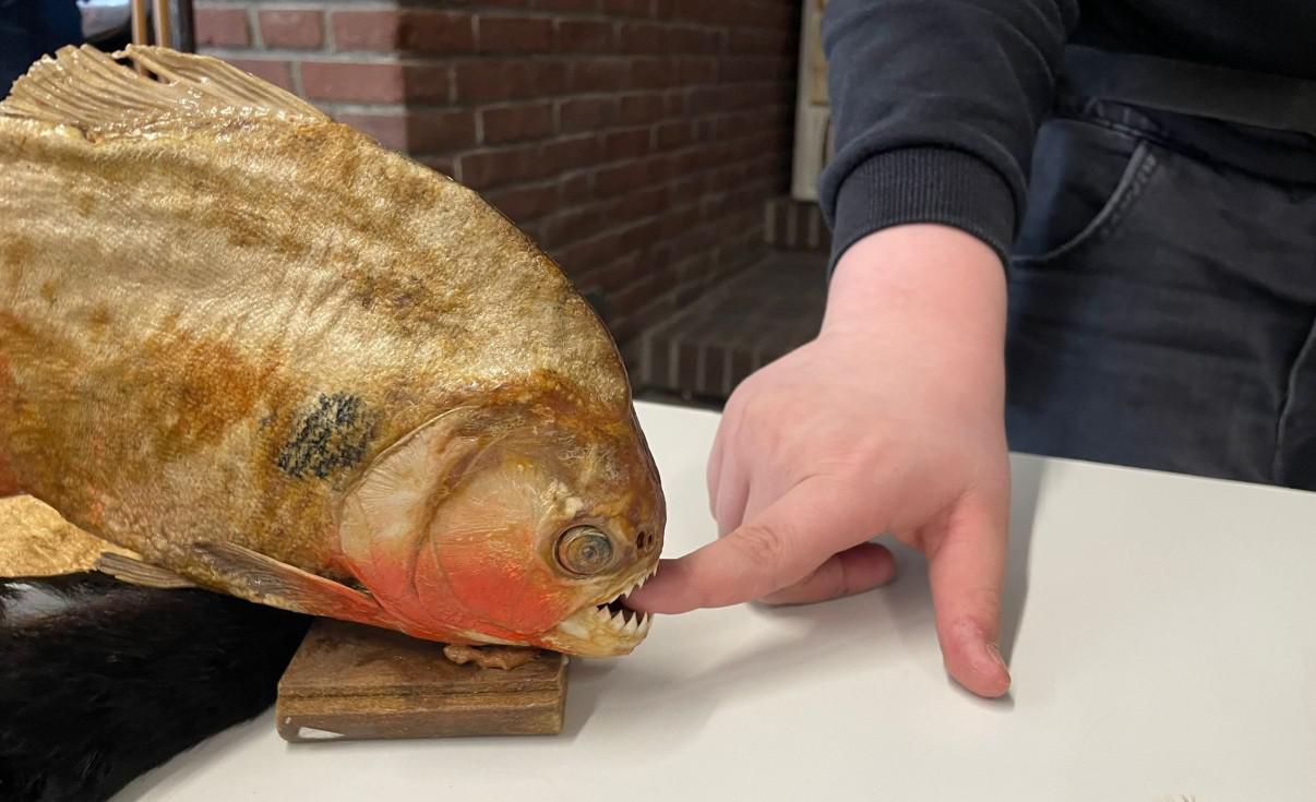 Die Folgen von Malaria und Quecksilbervergiftung machten die aufmerksamen Kinder betroffen und allen wurde schnell klar, wie wertvoll Christina Haverkamps unermüdlicher Einsatz für den Schutz der Yanomami war und weiterhin ist. Ob der Bau von Schulen und Krankenstationen oder die Versorgung mit Funkgeräten, damit die weit verteilten Stämme miteinander kommunizieren können, all dies kostet Geld, Zeit, Expertise und Ressourcen. Mit den Einnahmen durch ihre Vorträge finanziert Christina Haverkamp seit 20 Jahren ihre Hilfsprojekte und reist weiterhin jährlich zu den Yanomami. Kein Wunder, dass die „ihre Christina“ am Ende ihrer Besuche nicht gehen lassen wollen. Und so wirkte es auch in der Aula der JBS. Noch lange nach Ende des Vortrags scharrten sich viele Kinder um sie und auch um die vielen Gegenstände, die sie von ihren Expeditionen mitgebracht hatte. Jagdspeere, Piranhas, Schmuck und selbstgebautes Spielzeug – in echt doch deutlich eindrucksvoller als nur auf Bildern.