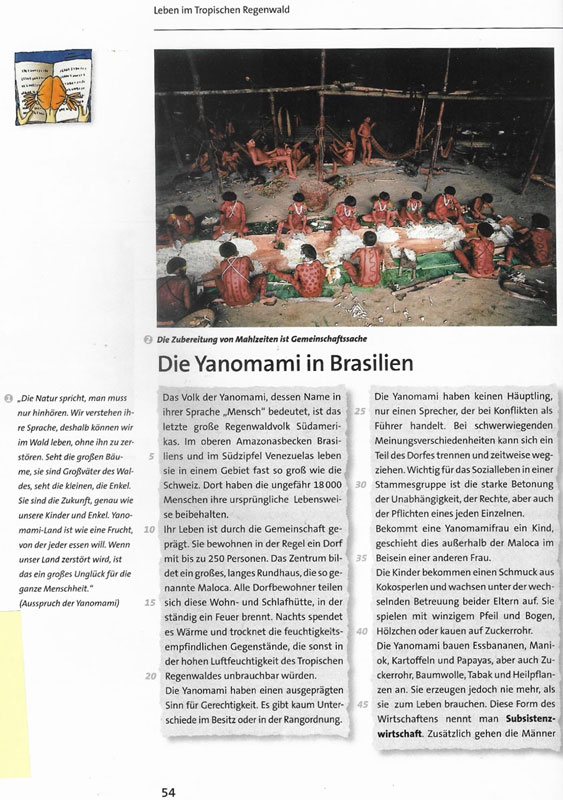 Im Schulbuch Klettverlag – Infoblatt Yanomami: